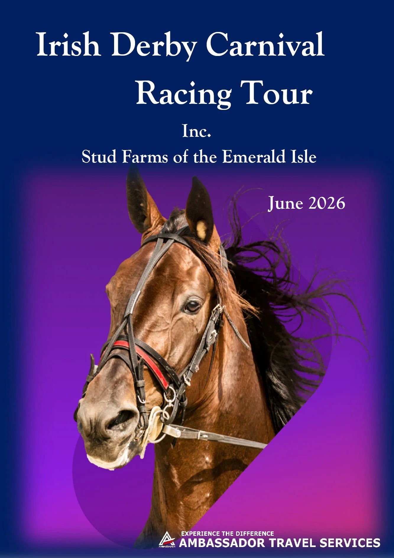 Once again Ambassador is hosting a tour to the Irish Derby and I invite you to join us for a trip including outstanding racing, sightseeing, fun and memories. Ireland offers world class stud farms, Racing, magnificent sightseeing, old fashioned Irish hospitality and famous Irish Pubs